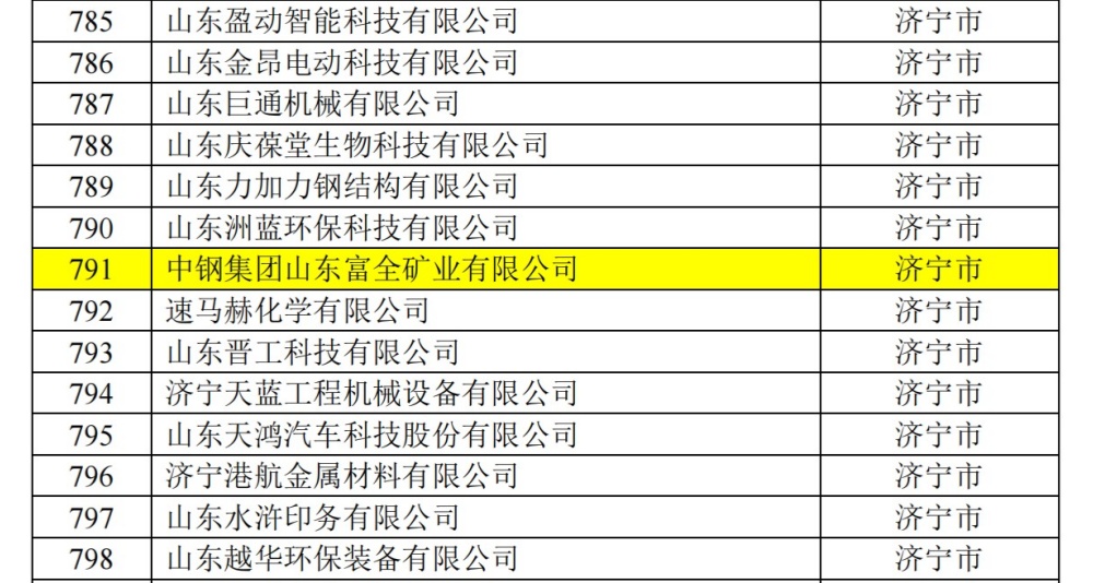中鋼富全礦業入選2024年度山東省數字經濟“晨星工廠”名單
