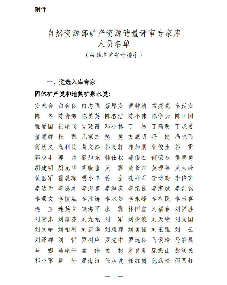 自然資源部關於公布礦產資源儲量評審專家庫人員名單的公告