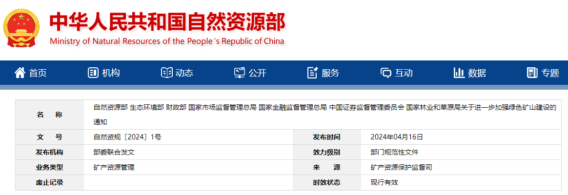 綠色礦山建設是推動礦業高質量發展的重要舉措,是礦業領域生態文明建設的有力抓手,是實現人與自然和諧共生的必然要求,為加快礦業綠色低碳轉型發展,全麵推進綠色礦山建設,現就有關事項通知如下。