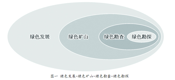 從“探采一體化”角度而言,綠色發展、綠色礦山、綠色勘查、綠色勘探具有依次包含關係(如圖一)。