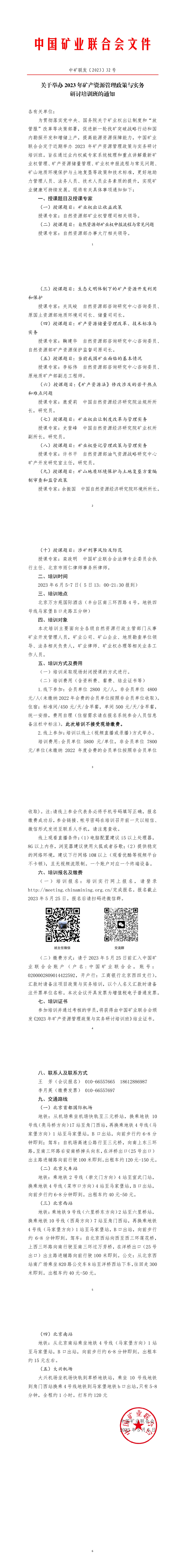2023年礦產資源管理政策與實務研討培訓班將於6月5-7日在北京舉辦。本次培訓將係統梳理和重點講解最新礦業權管理、礦產資源儲量管理、礦業權申報流程與常見問題、礦山地質環境保護與土地複墾等政策和技術標準。