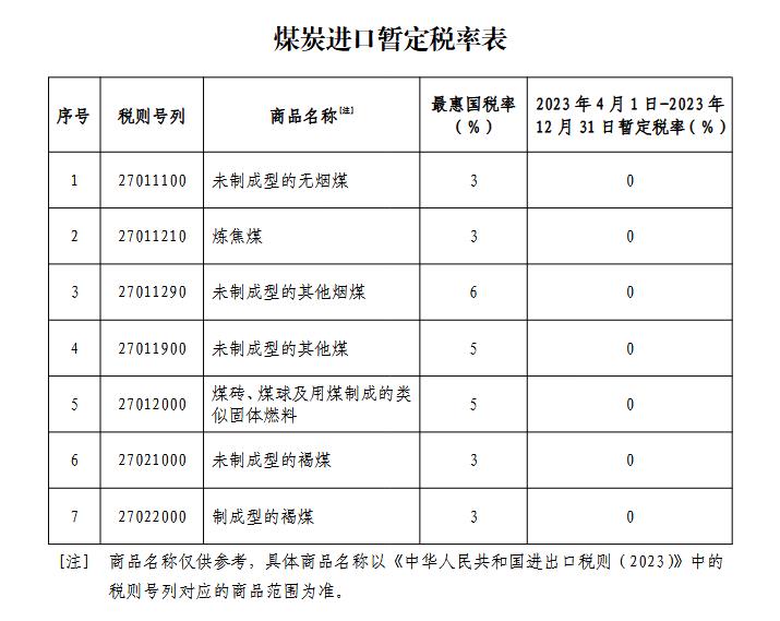 3月25日,據財政部消息,為支持國內煤炭安全穩定供應,國務院關稅稅則委員會按程序決定,自2023年4月1日至2023年12月31日,繼續對煤炭實施稅率為零的進口暫定稅率。(財政部網站)