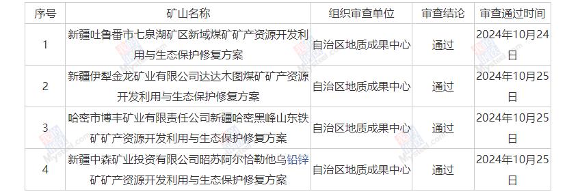 新疆4個礦產資源開發利用與生態保護修複方案項目報告審查情況