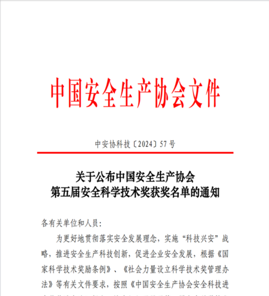 中國安全生產(chan) 協會(hui) 安全科學技術獎是經國家科學技術獎勵辦公室批準,中國安全生產(chan) 協會(hui) 設立,旨在獎勵在國內(nei) 安全生產(chan) 領域中為(wei) 為(wei) 基礎理論和管理方法研究、技術標準製定、科學技術發明、科技成果研發和轉化、設施設備技術改造和創新、技術應用與(yu) 推廣等工作中做出突出貢獻的有關(guan) 單位和個(ge) 人,是國家安全生產(chan) 領域唯一的全國性安全科技最高獎項,申報範圍涵蓋所有行業(ye) 和領域,參評範圍廣,科技創新技術含量高,評審輪次包括形式審查、初評網評和會(hui) 審、項目公示、現場答辯、評審委員會(hui) 終評等多個(ge) 環節,獲獎難度極大。獲得一等獎項目可被推薦參評國家級技術獎項。
