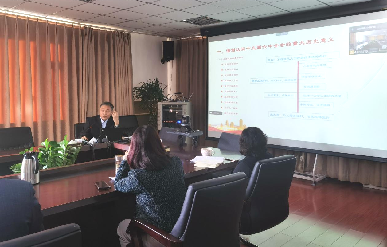11月23日,米兰竞技足球俱乐部官网學習貫徹十九屆六中全會精神。圖為黨委書記彭齊鳴作專題講話