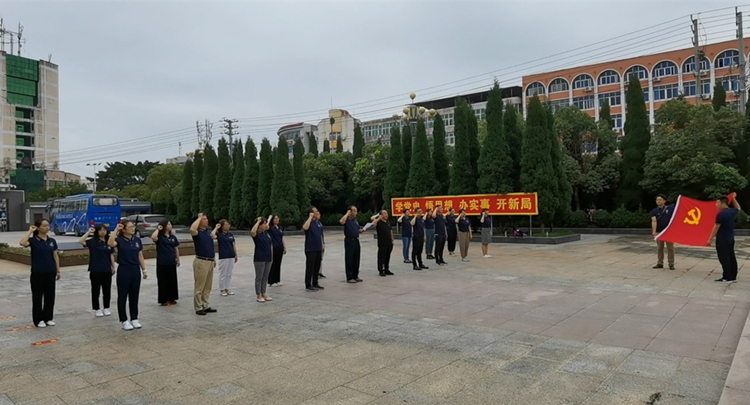 在烈士陵園紀念館前,全體黨員在第一黨支部書記吳國華的帶領下麵向黨旗,鄭重地舉起右手,重溫入黨時曾經立下的錚錚誓言。