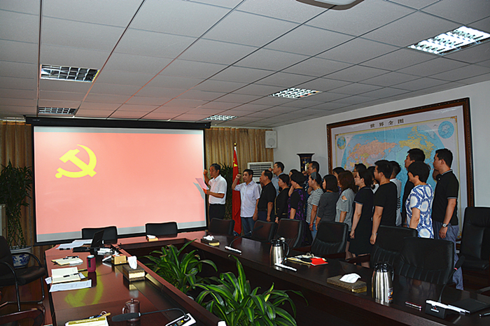 活動在重溫入黨誓詞中開始,全體黨員麵向黨旗,在黨委書記、會長彭齊鳴的帶領下,重溫入黨誓詞,莊嚴宣誓。