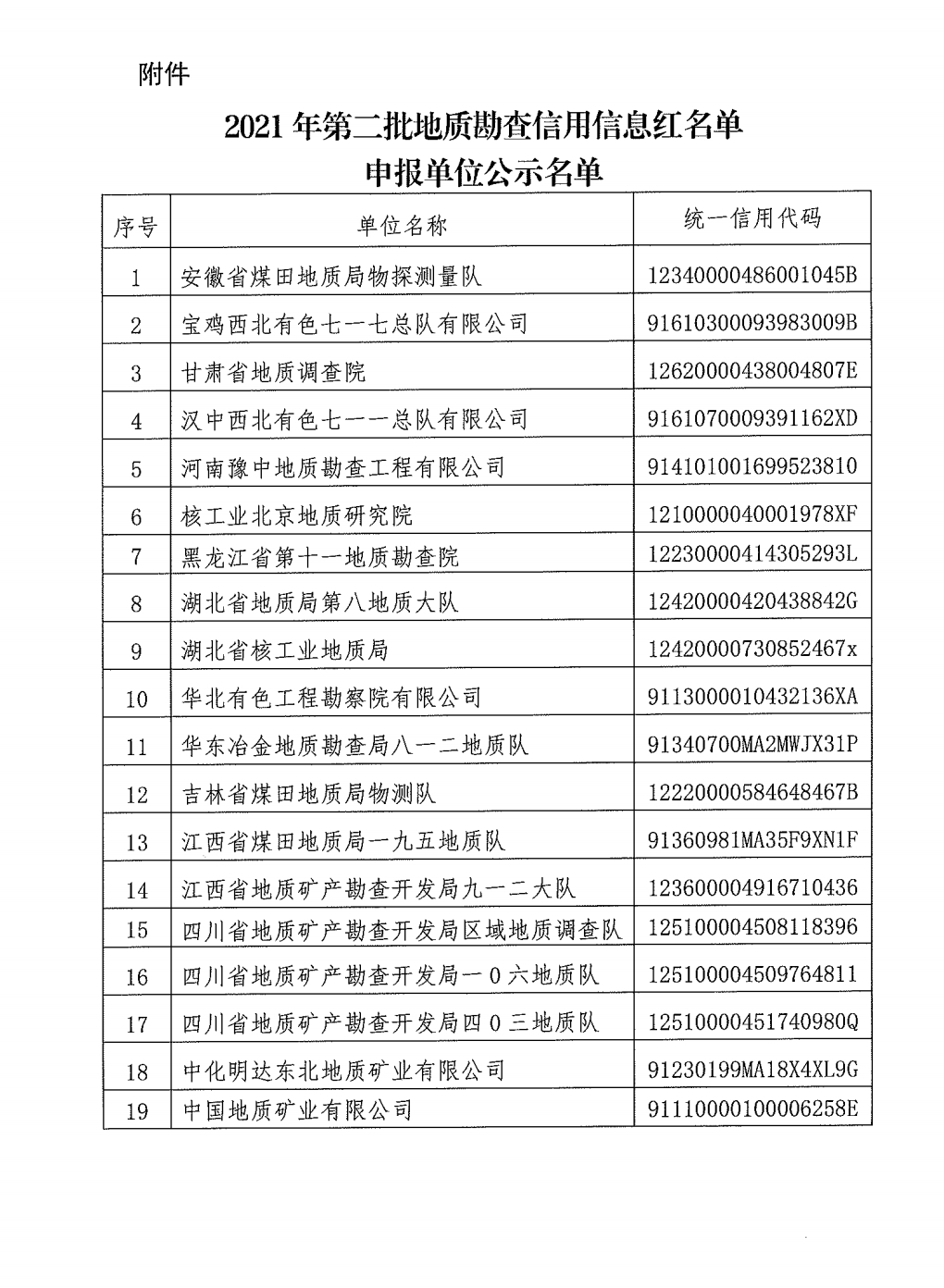 米兰竞技足球俱乐部官网公示:2021年第二批地質勘查信用信息紅名單