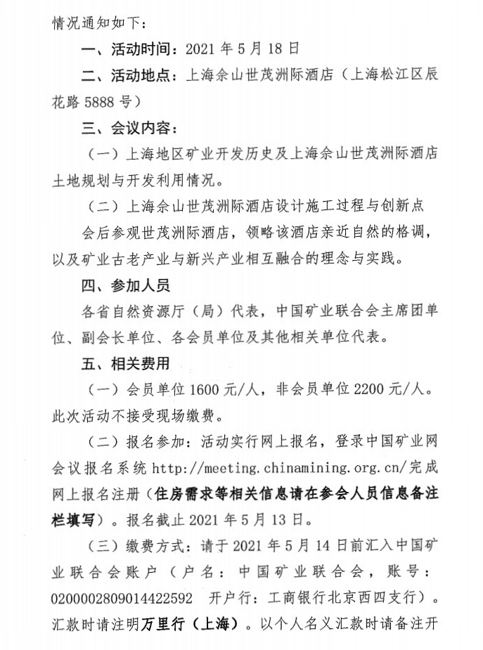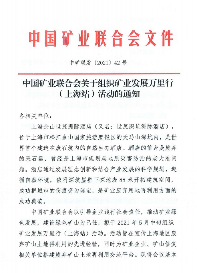 米兰竞技足球俱乐部官网關於組織礦業發展萬裏行(上海站)活動的通知