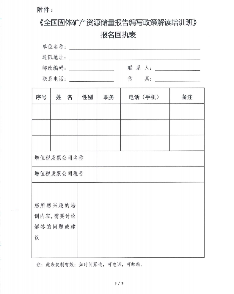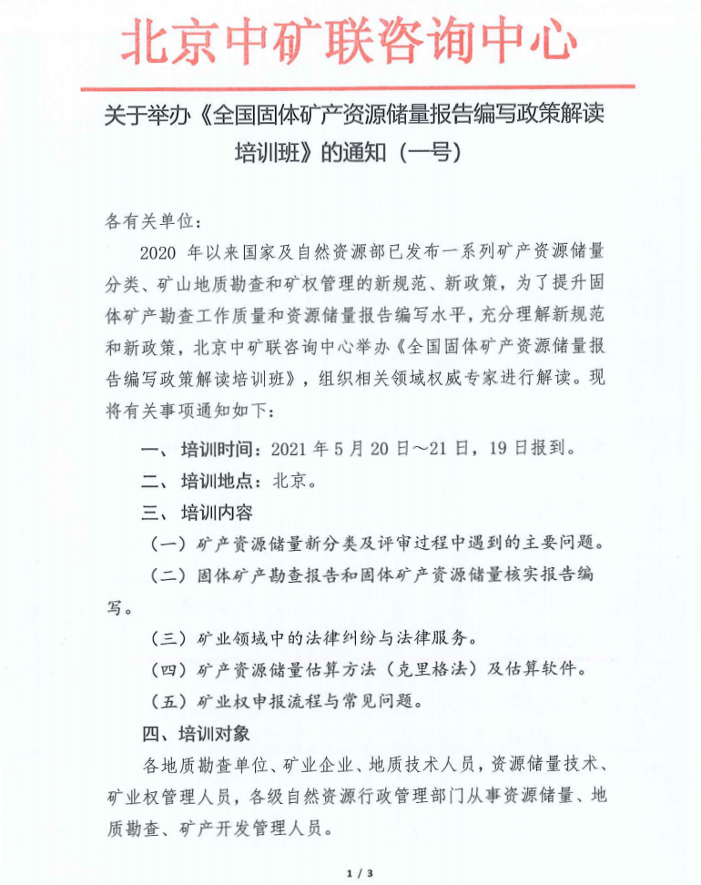 關於舉辦《全國固體礦產資源儲量報告編寫政策解讀培訓班》的通知(一號)