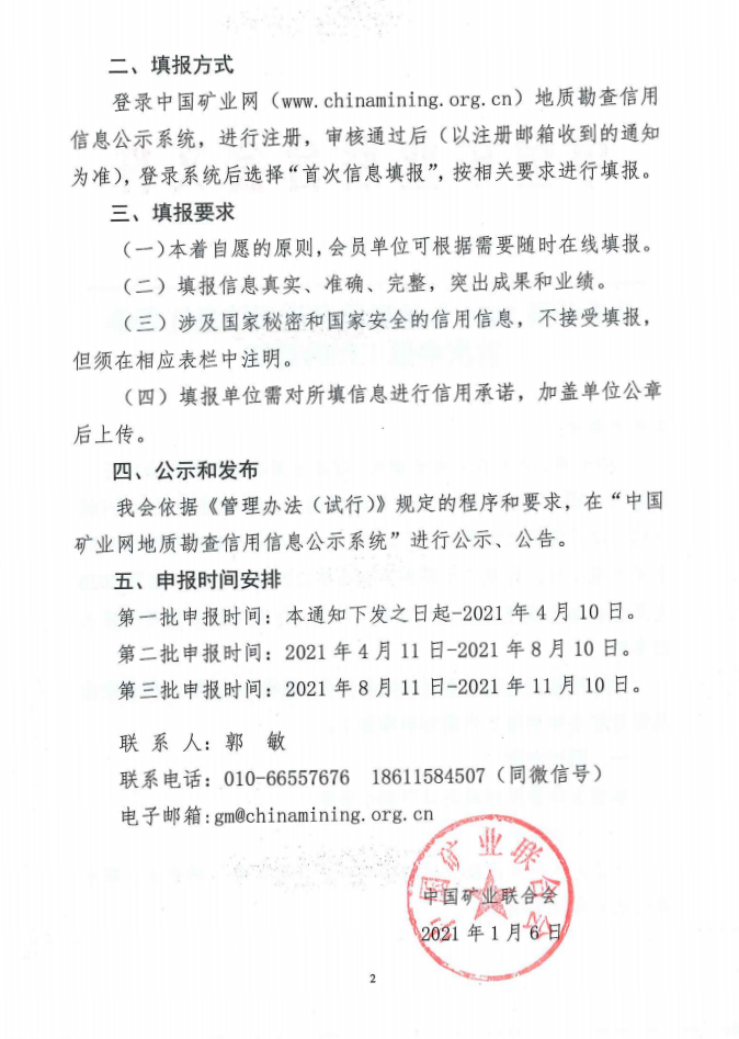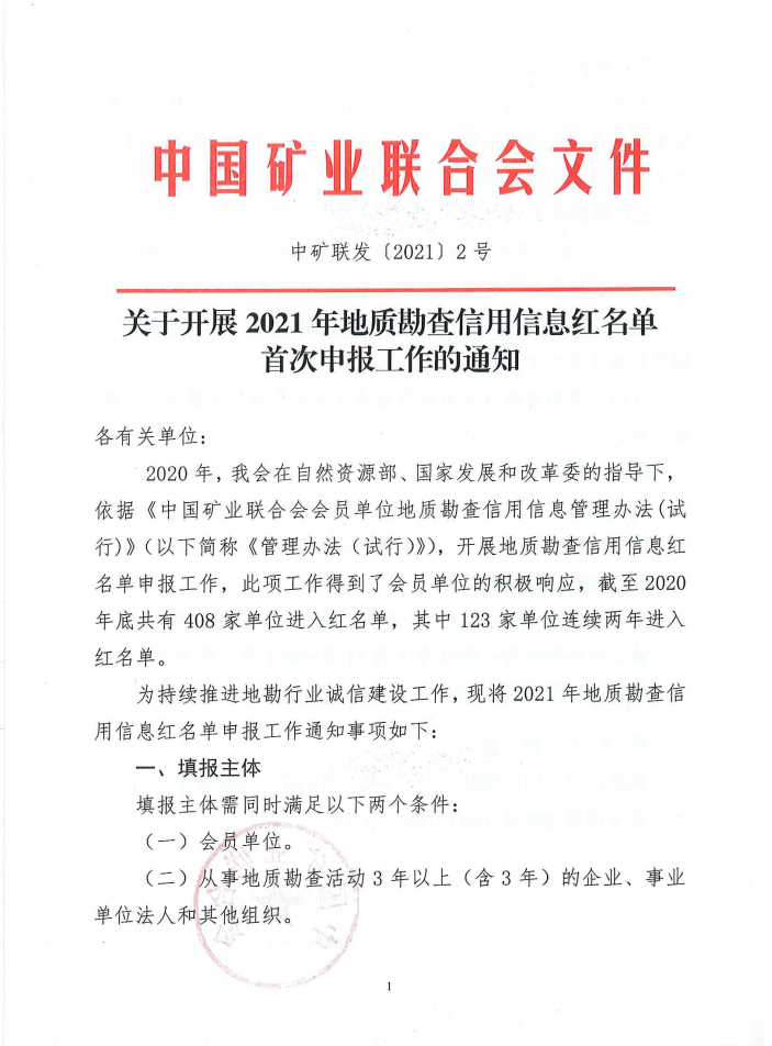 關於開展2021年地質勘查信用信息紅名單首次申報工作的通知