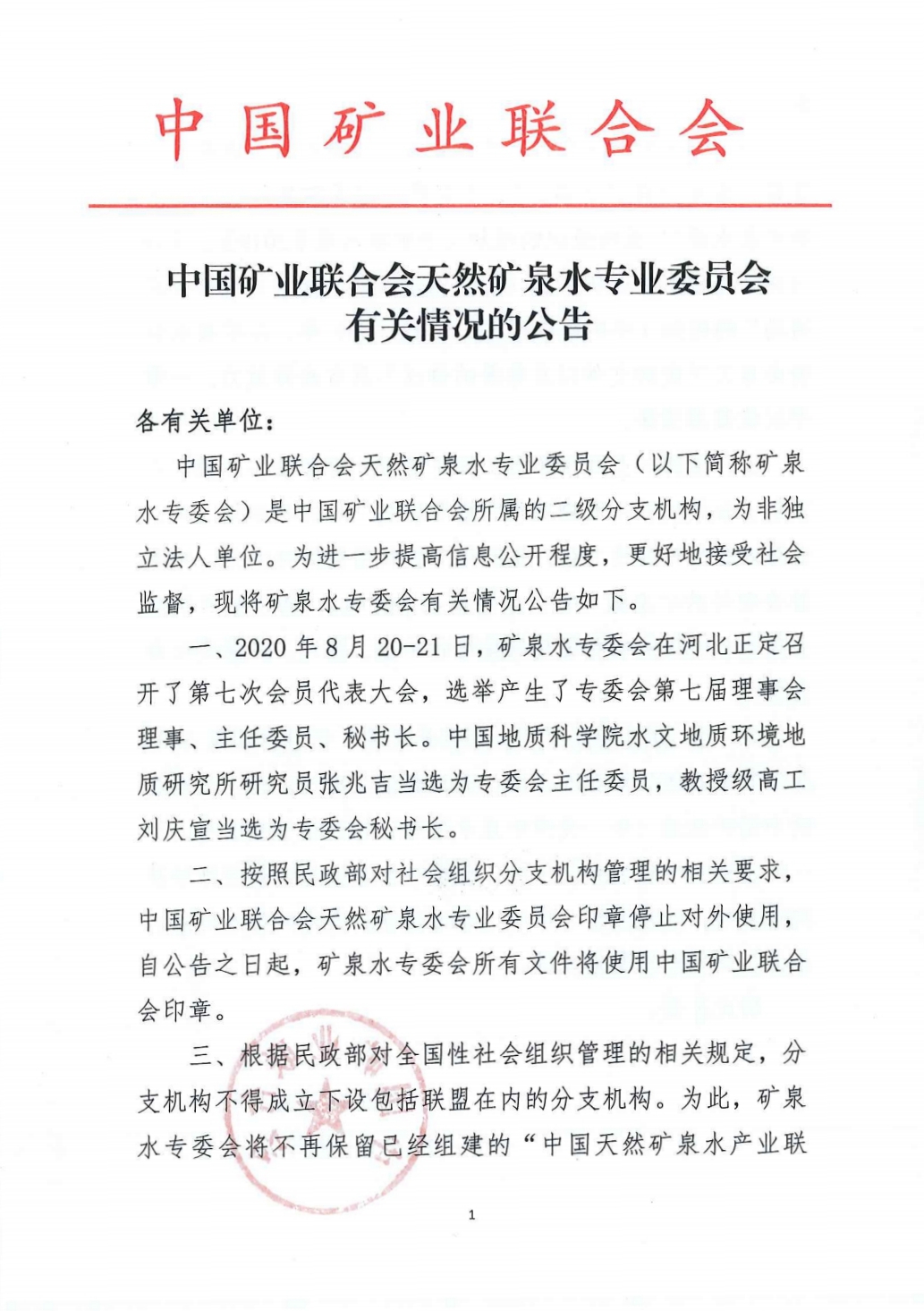 米兰竞技足球俱乐部官网天然礦泉水專業委員會有關情況的公告
