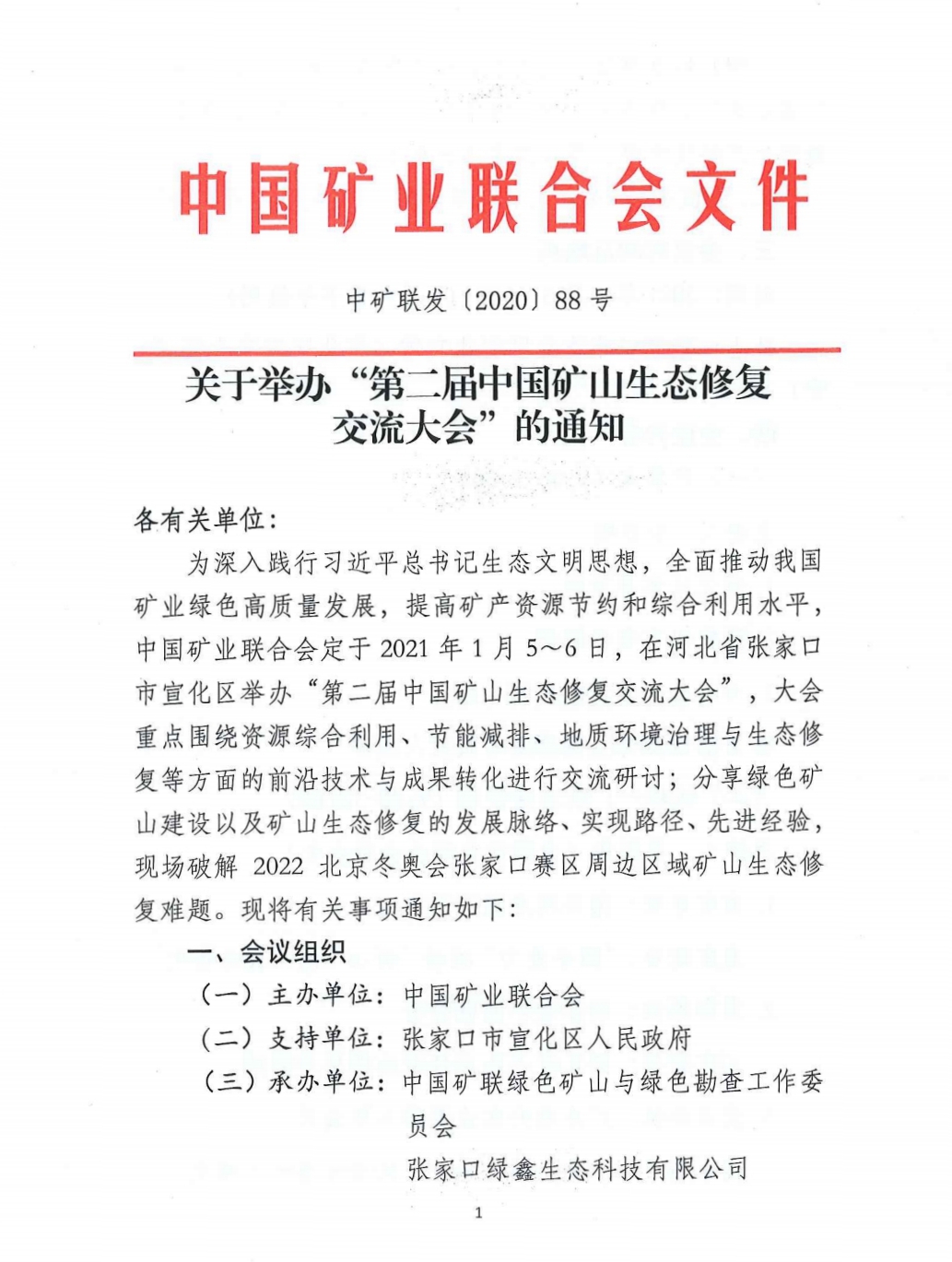 關於舉辦“第二屆中國礦山生態修複交流大會”的通知
