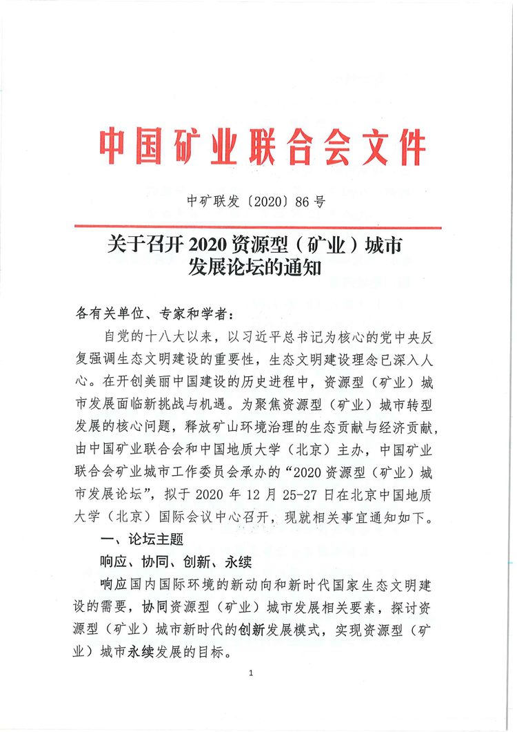 關於召開2020資源型(礦業)城市發展論壇的通知_米兰竞技足球俱乐部官网_米兰体育官方网页 中國國際礦業大會