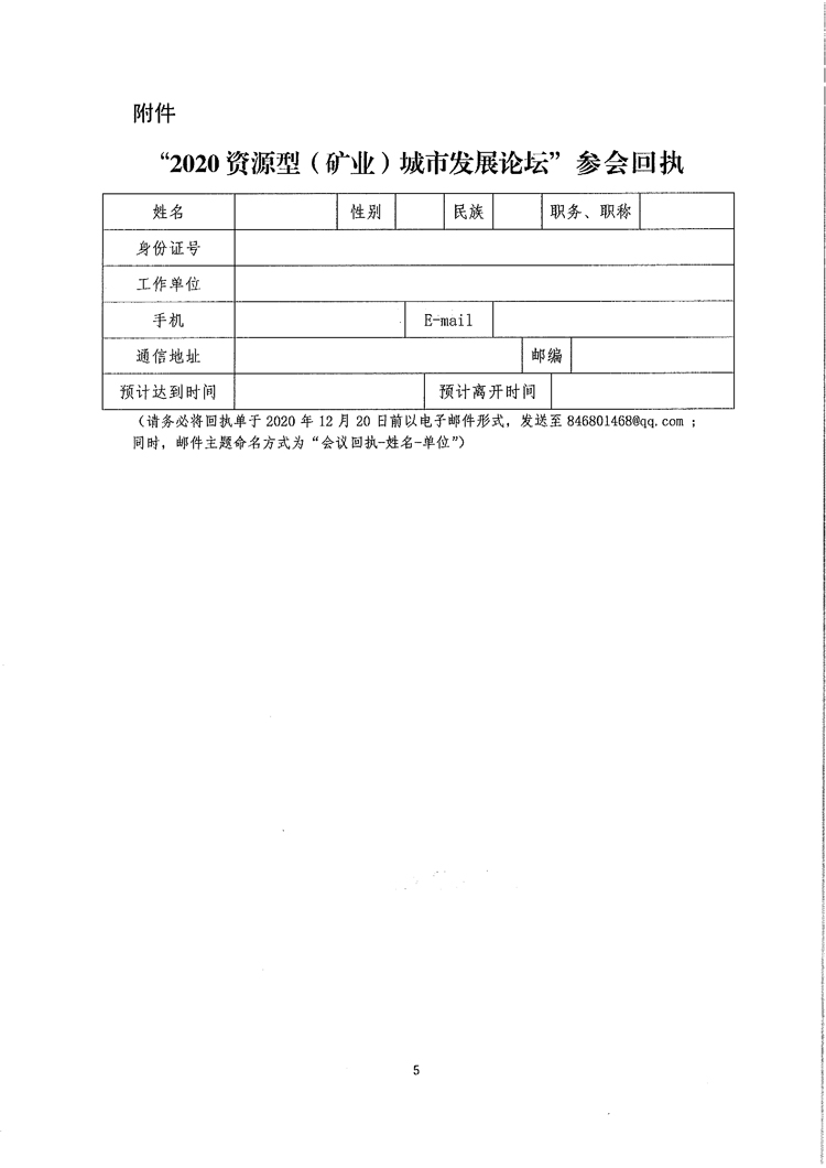 關於召開2020資源型(礦業)城市發展論壇的通知