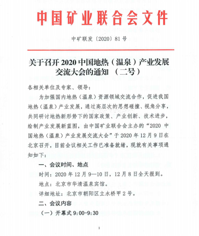 關於召開2020中國地熱(溫泉)產業發展交流大會的通知 (二號)