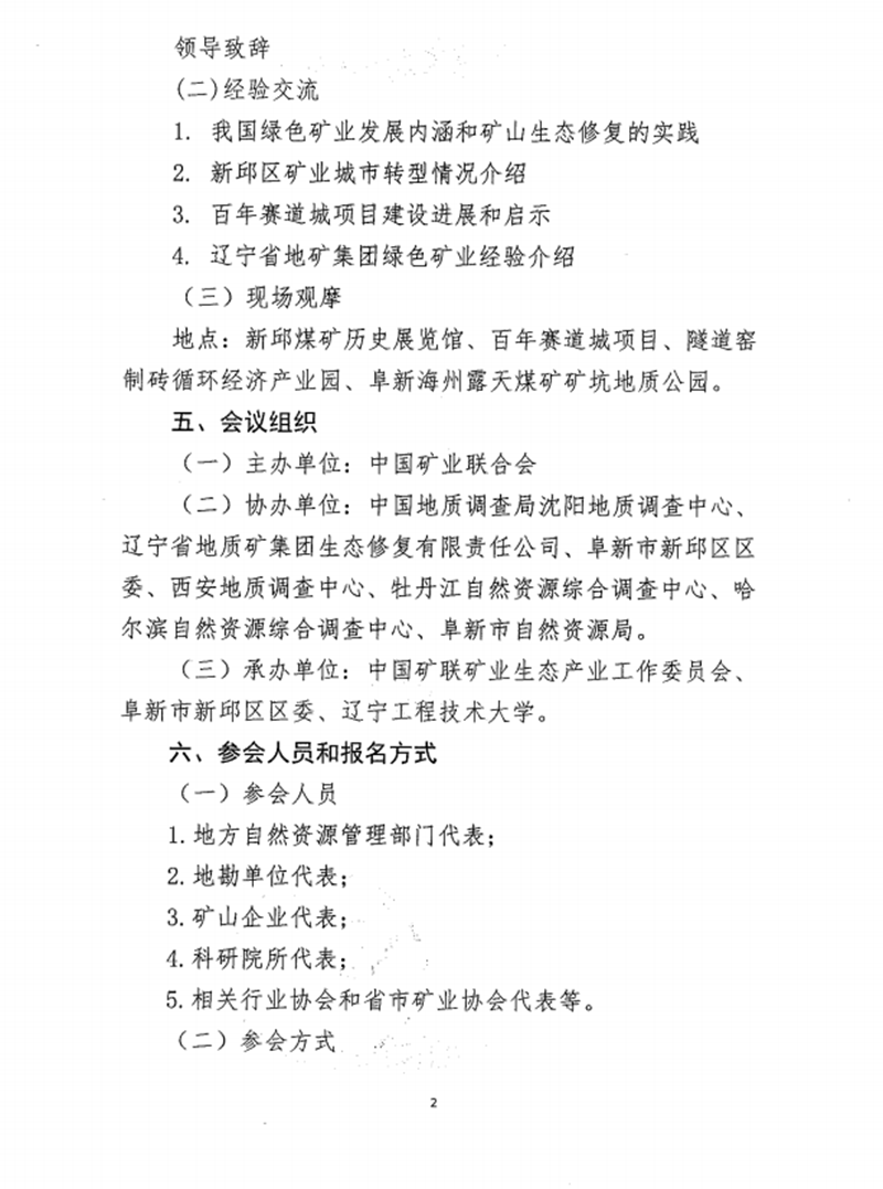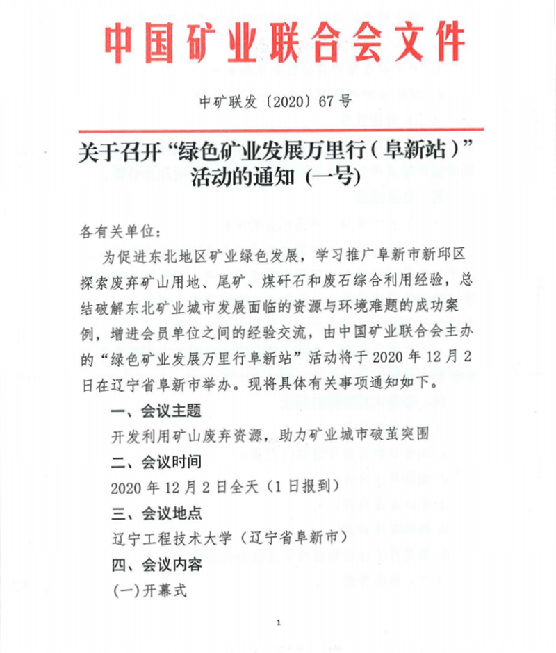“綠色礦業發展萬裏行(阜新站)” 活動的通知 (一號)