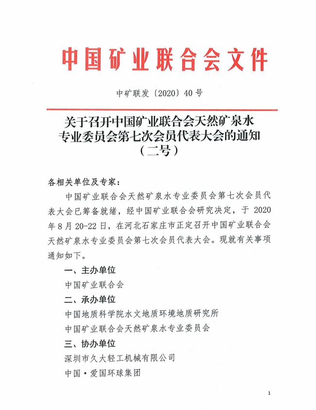 米兰竞技足球俱乐部官网天然礦泉水專業委員會第七次會員代表大會即將召開