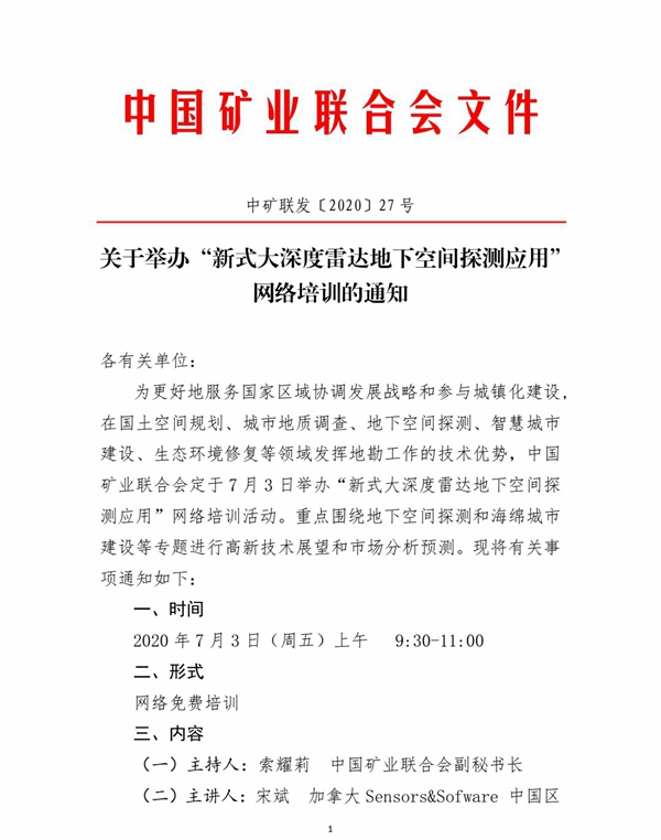 中國礦聯“新式大深度雷達地下空間探測應用”網絡培訓的通知