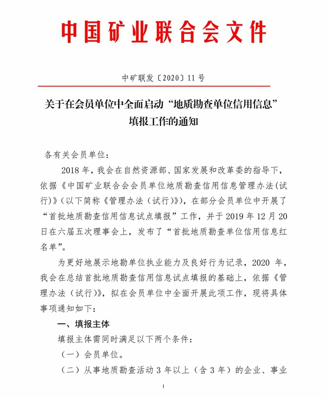 為更好地展示地勘單位執業能力及良好行為記錄,2020年,我會在總結首批地質勘查信用信息試點填報的基礎上,依據《管理辦法(試行)》,擬在會員單位中全麵開展此項工作,現將具體事項通知如下: