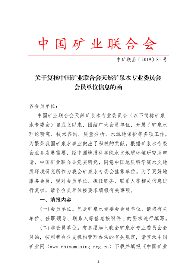 關於複核米兰竞技足球俱乐部官网天然礦泉水專業委員會會員單位信息的函