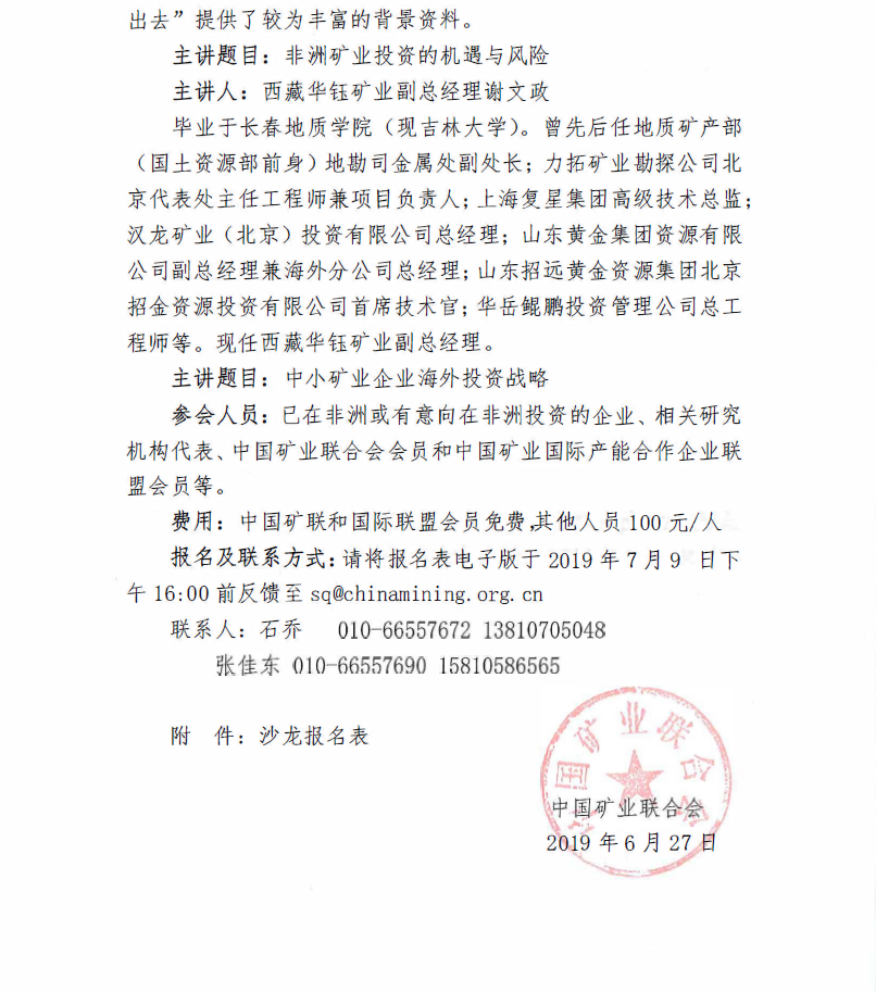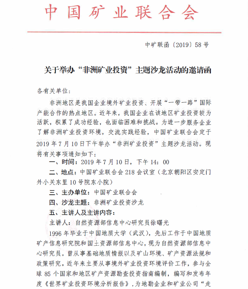 中國礦聯:關於舉辦“非洲礦業投資”主題沙龍活動的邀請函