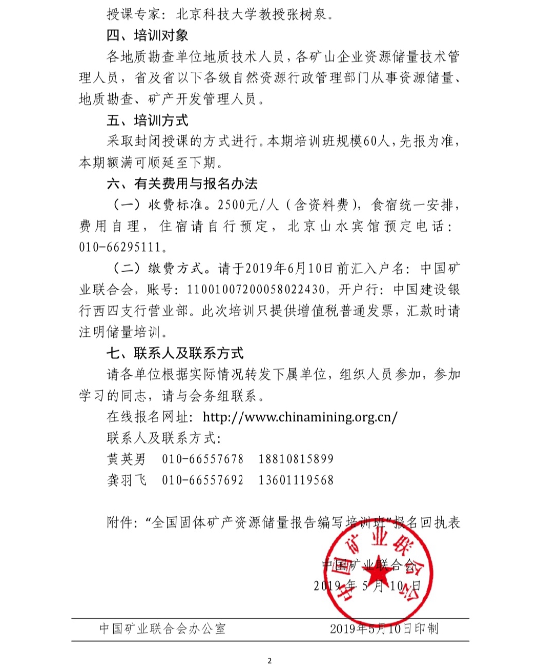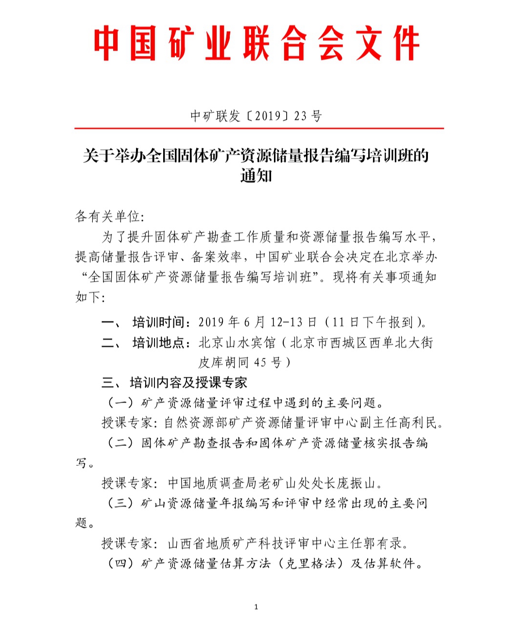 中國礦聯:關於舉辦全國固體礦產資源儲量報告編寫培訓班的通知