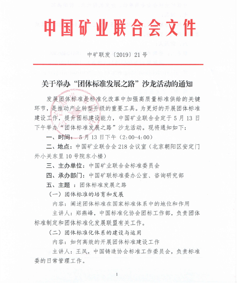 中國礦聯:關於舉辦“團體標準發展之路”沙龍活動的通知