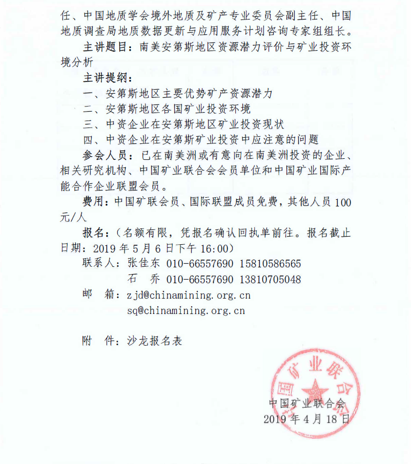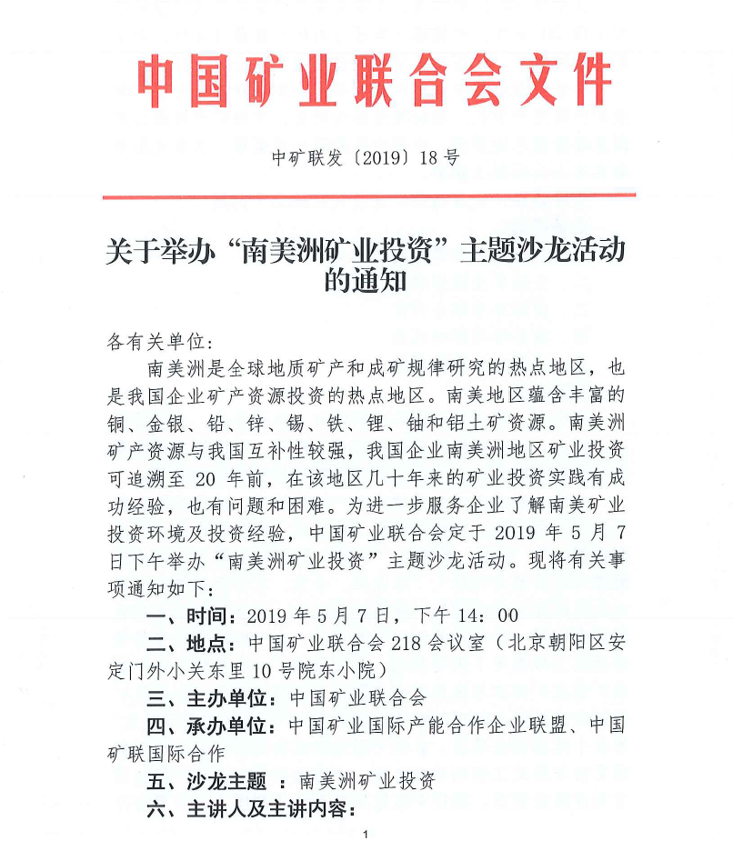 中國礦聯:關於舉辦“南美洲礦業投資”主題沙龍活動的通知