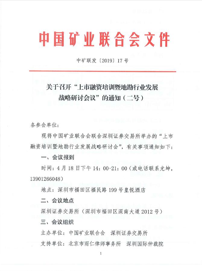 (二號)關於召開“上市融資培訓暨地勘行業發展戰略研討會議”的通知_米兰竞技足球俱乐部官网_米兰体育官方网页 中國國際礦業大會