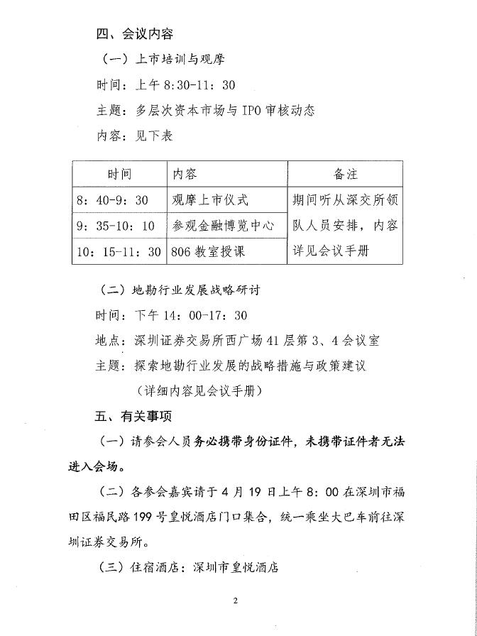 (二號)關於召開“上市融資培訓暨地勘行業發展戰略研討會議”的通知