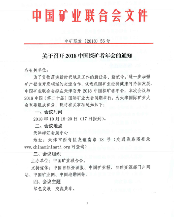 中國礦聯:關於召開2018中國探礦者年會的通知
