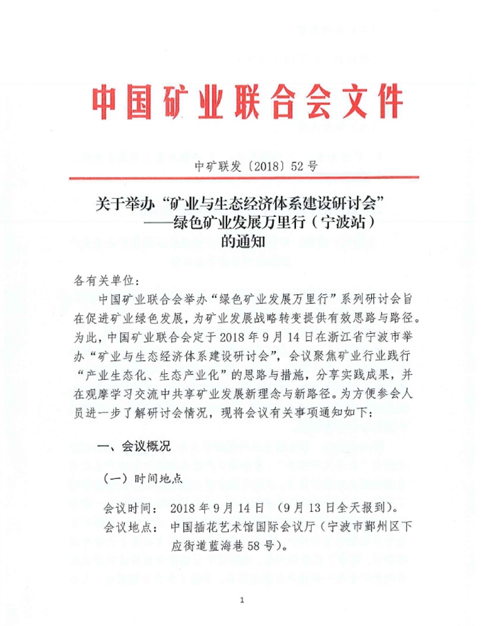 ——綠色礦業發展萬裏行(寧波站)的通知