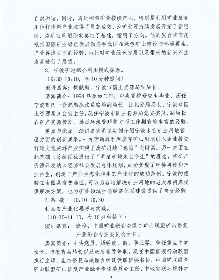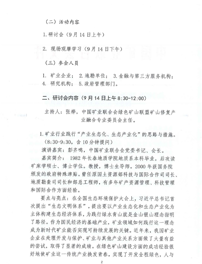1.礦業行業踐行“產業生態化、生態產業化”的思路與措施。(8:30-9:30,含10分鍾提問)