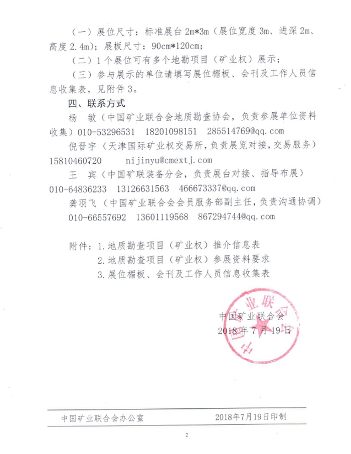 倪晉宇 (天津國際礦業權交易所,負責展覽對接,交易服務) 15810460720 nijinyu@cmextj.com