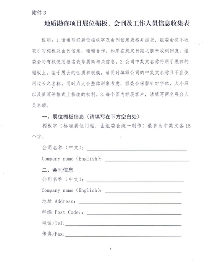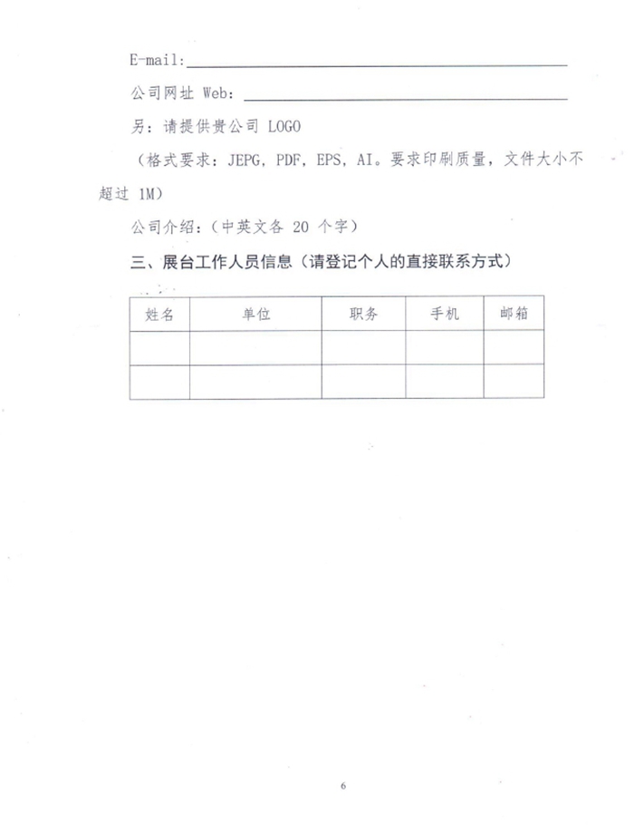 (三)參與展示的單位請填寫展位楣板、會刊及工作人員信息收集表,見附件3。