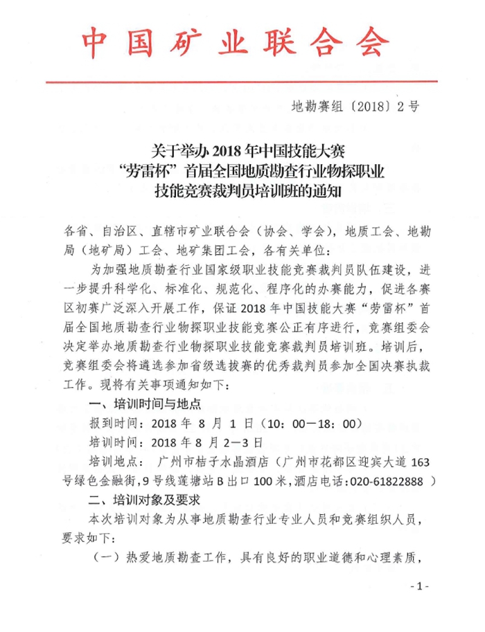裁判員培訓班:“勞雷杯”首屆全國地質勘查行業物探職業技能競賽裁判員培訓班的通知