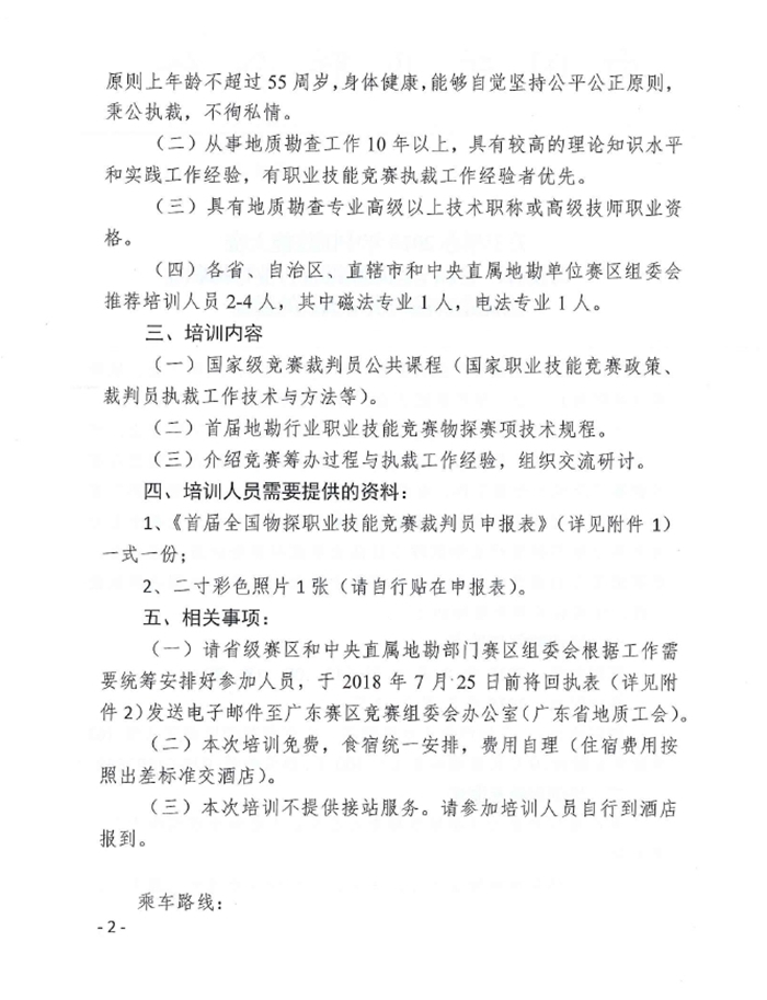為加強地質勘查行業國家級職業技能競賽裁判員隊伍建設,進一步提升科學化、標準化、規範化、程序化的辦賽能力,促進各賽區初賽廣泛深入開展工作,保證2018年中國技能大賽“勞雷杯”首屆全國地質勘查行業物探職業技能競賽公正有序進行,競賽組委會決定舉辦地質勘查行業物探職業技能競賽裁判員培訓班。培訓後,競賽組委會將遴選參加省級選拔賽的優秀裁判員參加全國決賽執裁工作。現將有關事項通知如下: