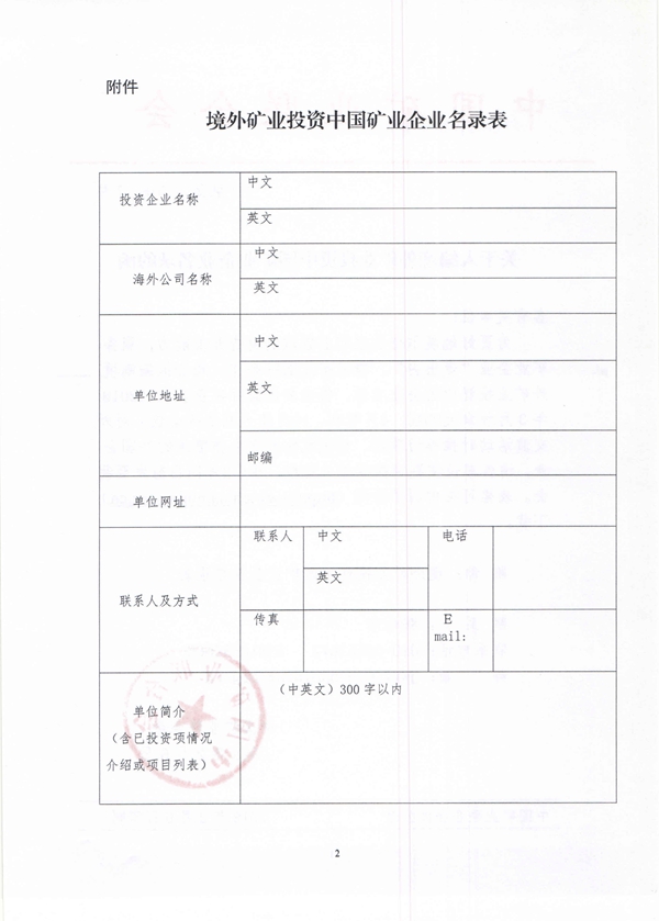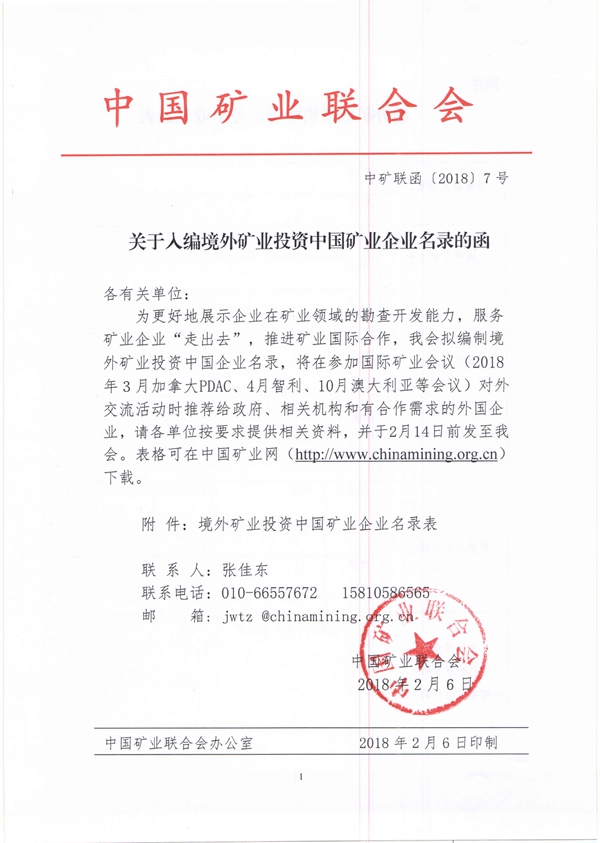 中國礦聯:關於入編境外礦業投資中國礦業企業名錄的函