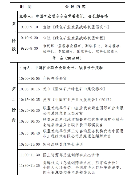 日程|綠色礦業發展戰略聯盟成立大會
