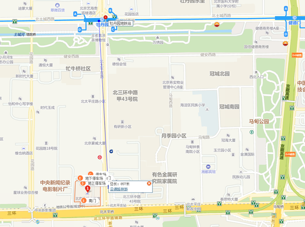 乘坐地鐵:地鐵10號線牡丹園站下車,D口出,向南800米即到(如下圖)