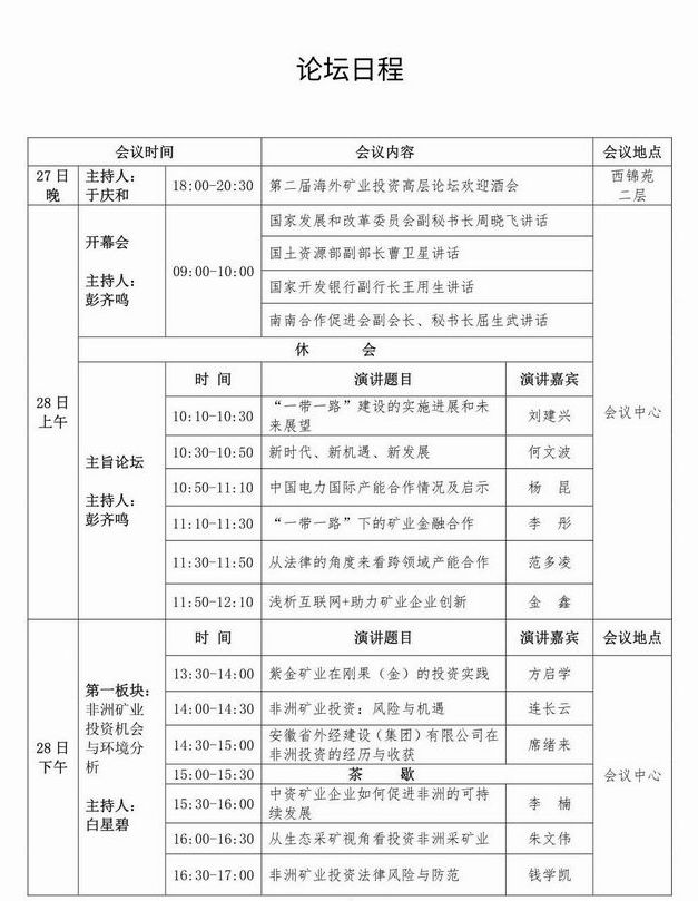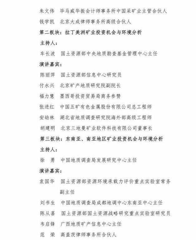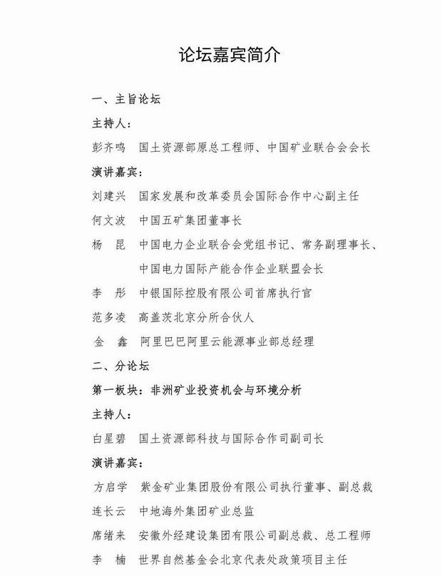 第二屆海外礦業投資高層論壇主持人及演講嘉賓簡介如下: