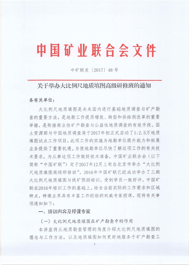 大比例尺地質填圖是未來國內進行基礎地質調查與礦產勘查的重要方法,是地勘工作提質增效、轉型和供給側改革的重要舉措,是銜接商業性礦產勘查與公益性地質調查的有效手段。國土資源部與中國地質調查局於2017年初正式啟動了1:2.5萬地質填圖試點工作項目,此項工作的實施為地勘單位提升能力和拓展業務提供了重要機遇。為使地勘單位盡快了解這項工作的有關技術要求,為從事這項工作做好技術準備,米兰竞技足球俱乐部官网(以下簡稱“中國礦聯”)定於2017年12月上旬在北京市舉辦“大比例尺地質填圖高級研修班”。2016年中國礦聯已經成功舉辦了三期大比例尺地質填圖與找礦預測培訓,受到學員一致好評。中國礦聯在2016年培訓工作的基礎上,結合當前實際的工作需求和區域特點,特邀業界具有豐富工作經驗的權威專家授課。現將有關事項通知如下: