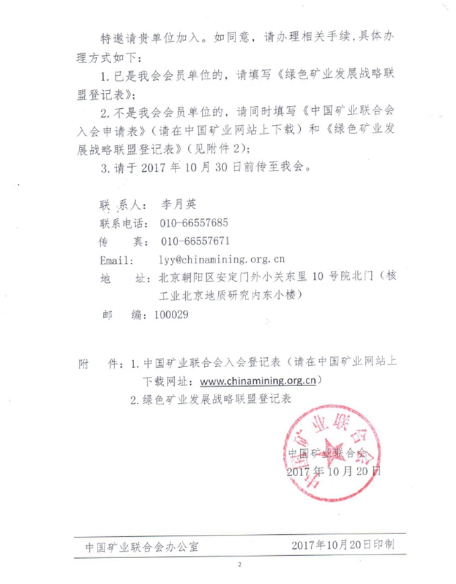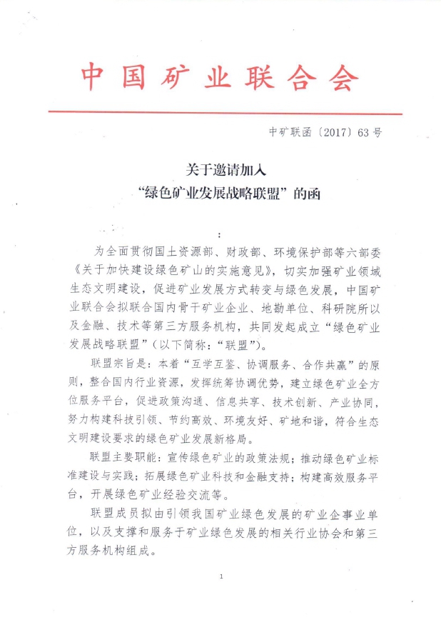 關於邀請加入“綠色礦業發展戰略聯盟”的函