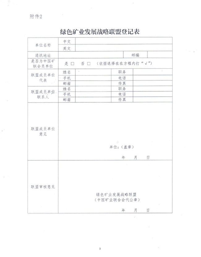 1.已是我會會員單位的,請填寫《綠色礦業發展戰略聯盟登記表》;