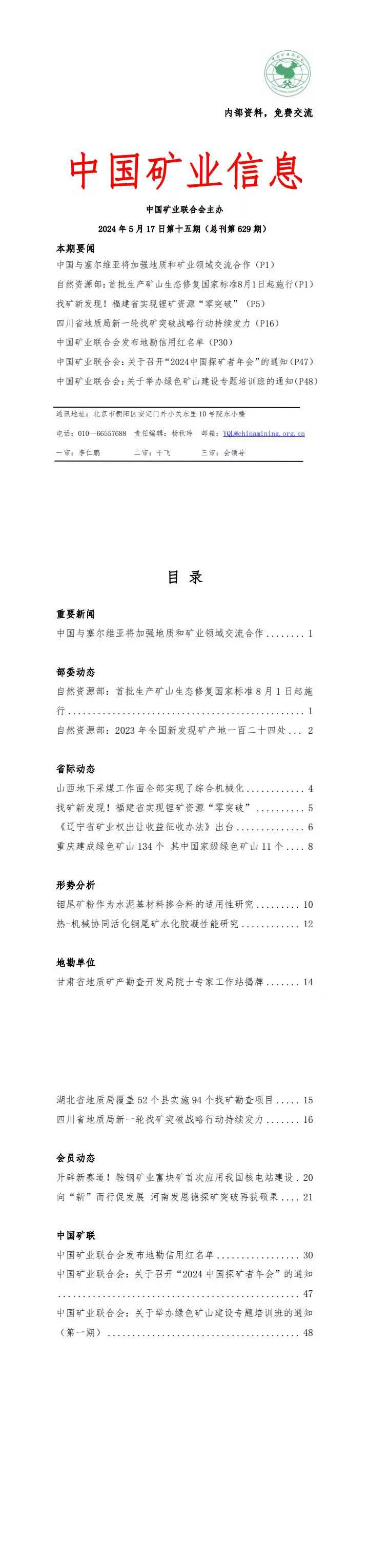 米兰体育官方网页:2024年5月13日—5月17日《中國礦業信息》第十五期