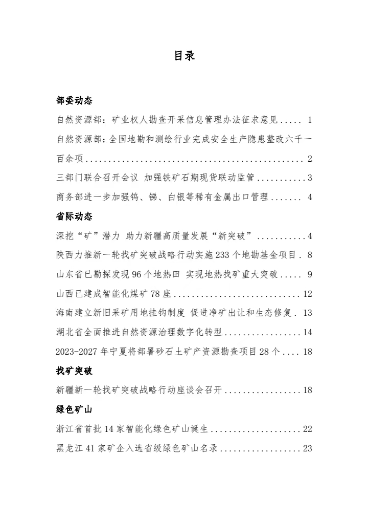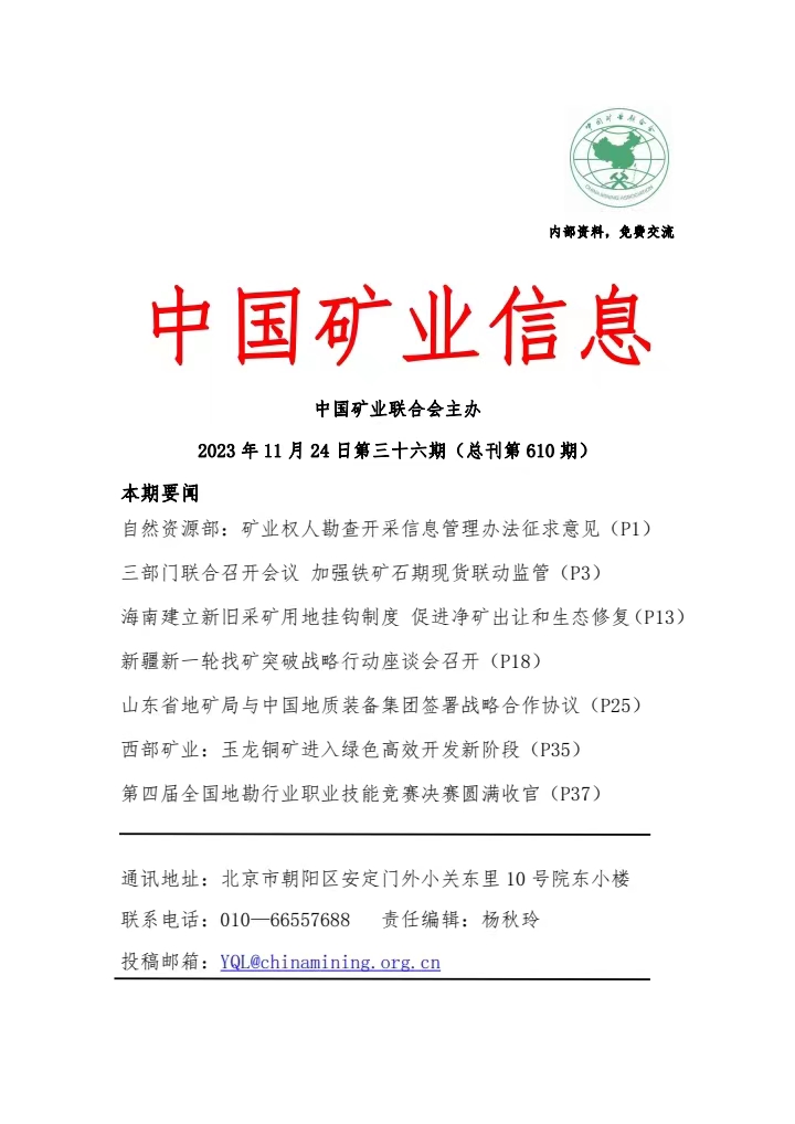 米兰体育官方网页:2023年11月20日—11月24日《中國礦業信息》第三十六期