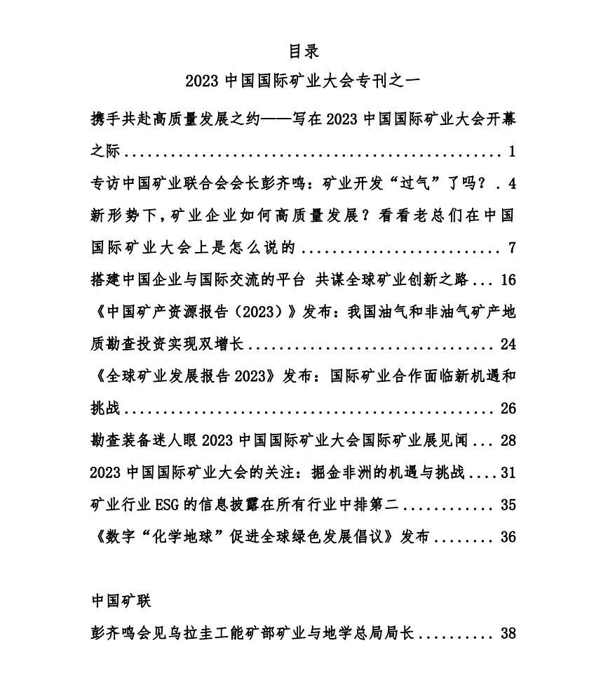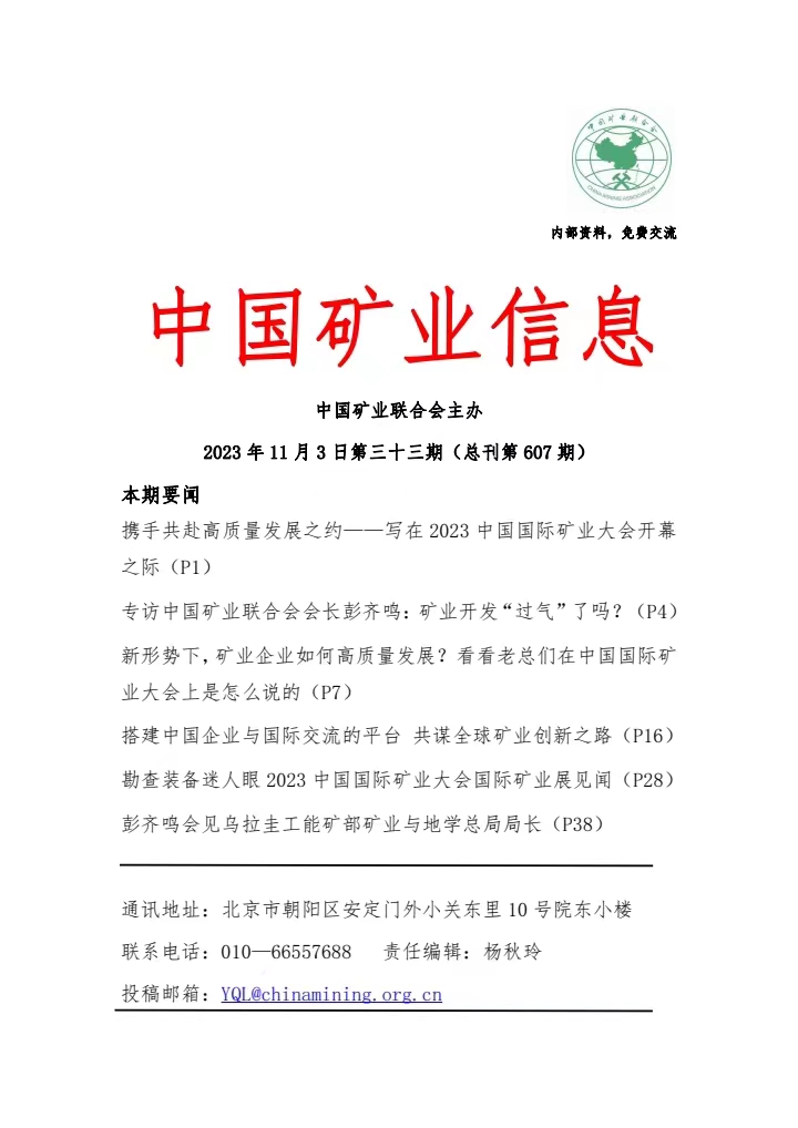 米兰体育官方网页:2023年10月31日—11月3日《中國礦業信息》第三十三期(礦業大會專刊之一)