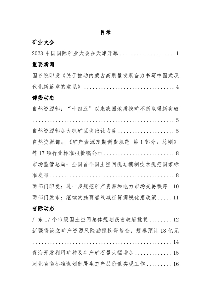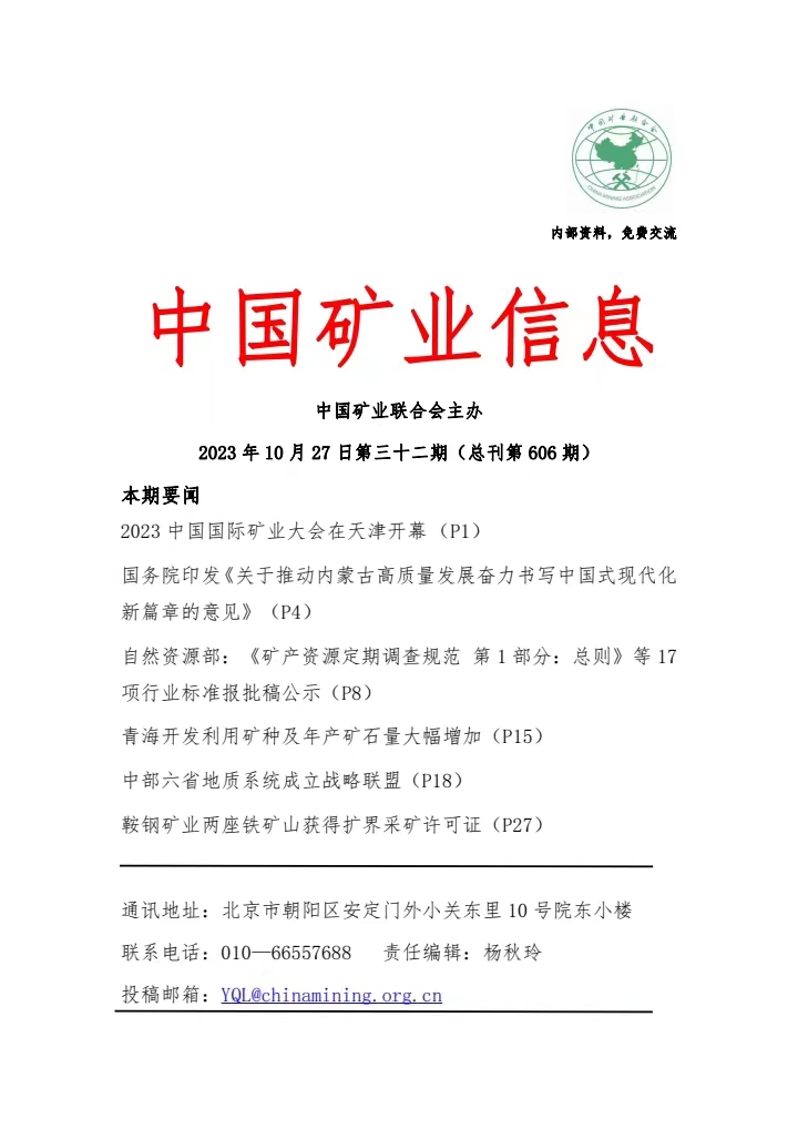 米兰体育官方网页:2023年10月23日—10月27日《中國礦業信息》第三十二期