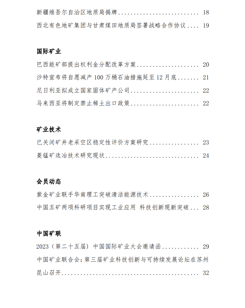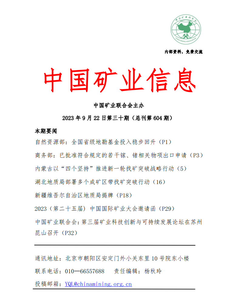 米兰体育官方网页:2023年9月18日—9月22日《中國礦業信息》第三十期